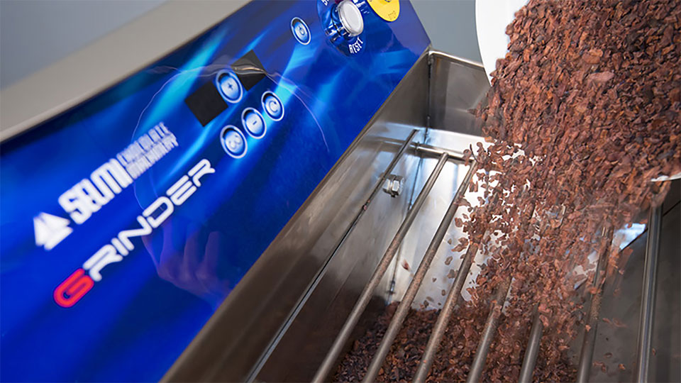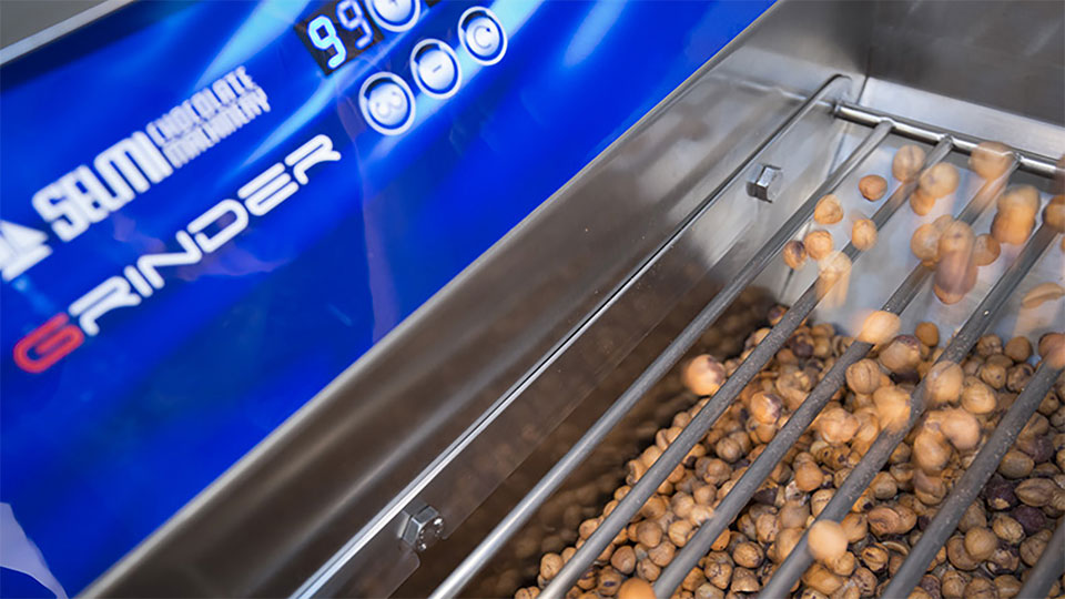 Selmi “Bean to Bar” yelpazesinin üçüncü bileşeni olan bu makine, 200 ila 250 mikron arasında parçacık boyutunda çekilmiş kakaoyu öğütme özel görevine sahiptir. Ürün hazneye yerleştirildiğinde, “rafine edilmemiş” bir ezme elde etmek için paslanmaz çelik millerle ezilir.
