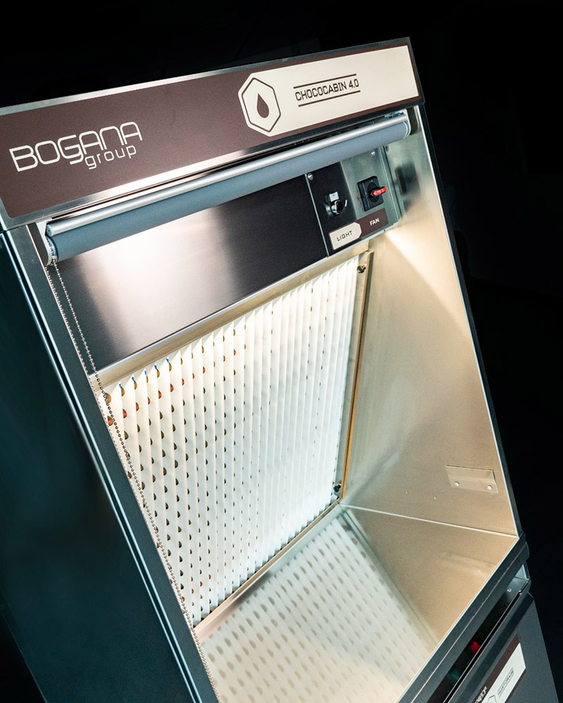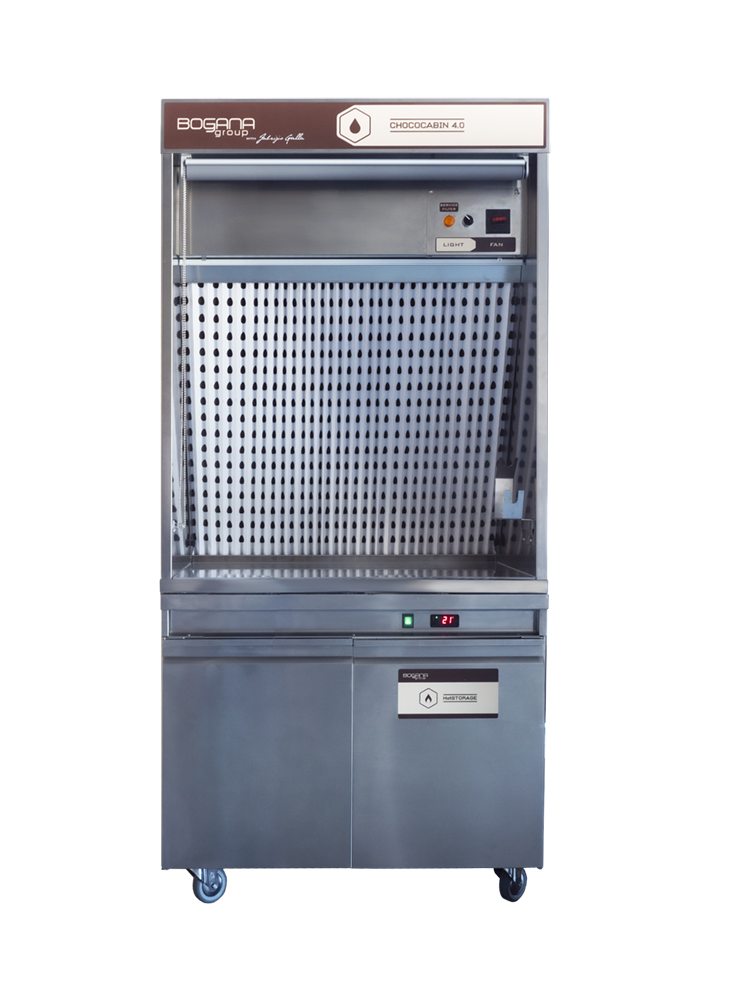 CHOCOCABIN 4.0 çikolata püskürtme kabini, kakao yağı, jelatinler ve yumurta sarısının püskürtülmesiyle ilgili yaygın sorunların çoğunu çözen her laboratuvar ve pastane için teknolojik ve yenilikçi bir üründür. Özel olarak tasarlanmış çift kanatlı sistemin devrim niteliğinde kullanımı ile Chococabin 4.0, çalışma alanlarının etrafına istenmeyen parçacıklar yaymadan her türlü ürünü püskürtmenize olanak tanır ve laboratuvarınızda en iyi temizlik seviyelerini garanti etmenize yardımcı olur. Filtreler düzenli temizlik ve/veya değişim için kolayca çıkarılabilir. CHOCOCABIN 4.0 çikolata püskürtme kabini, paslanmaz çelik tezgah ve LED aydınlatma sistemi ile donatılmıştır. Sıcak Depolama, CHOCOCABIN 4.0'ın tabanına eklenebilir, tekerleklere monte edilebilir, püskürtme botunuz için gerçekten mükemmel bir tabandır. Bu depolama, tüm püskürtme ürünleriniz (püskürtme işlemleri için en iyi yoğunluğu sağlar) ve gerekli tüm aksesuarlar için ideal ortamı sağlayacaktır. Sıcaklık, ön panele monte edilmiş bir dijital ekran ile izlenebilir. Depo ayrıca n.14 standart boyutlu fırın tepsileri (400x600mm) için desteklerle donatılmıştır.