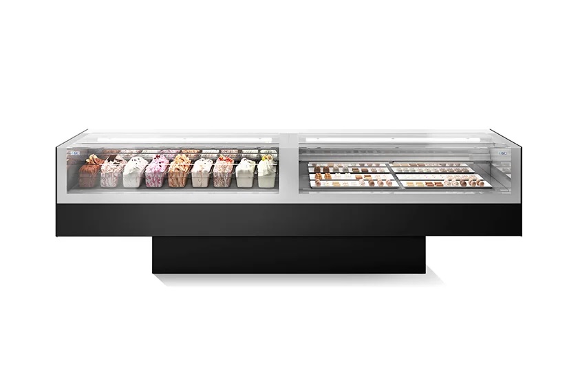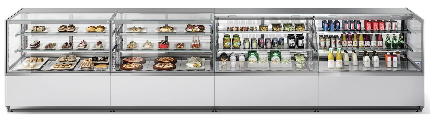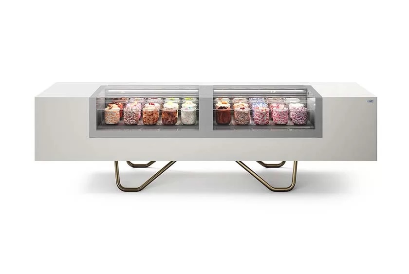 Çikolata ve pralin çalışmalarının sergilenmesi ve korunması için profesyonel çikolata vitrinleri: açık bir İtalyan tasarımı ve üst düzey teknik özelliklerle, çikolatanın lezzetini ve tadını zarafet ve işlevsellikle vurgulamak için dikey ve yatay vitrinler.