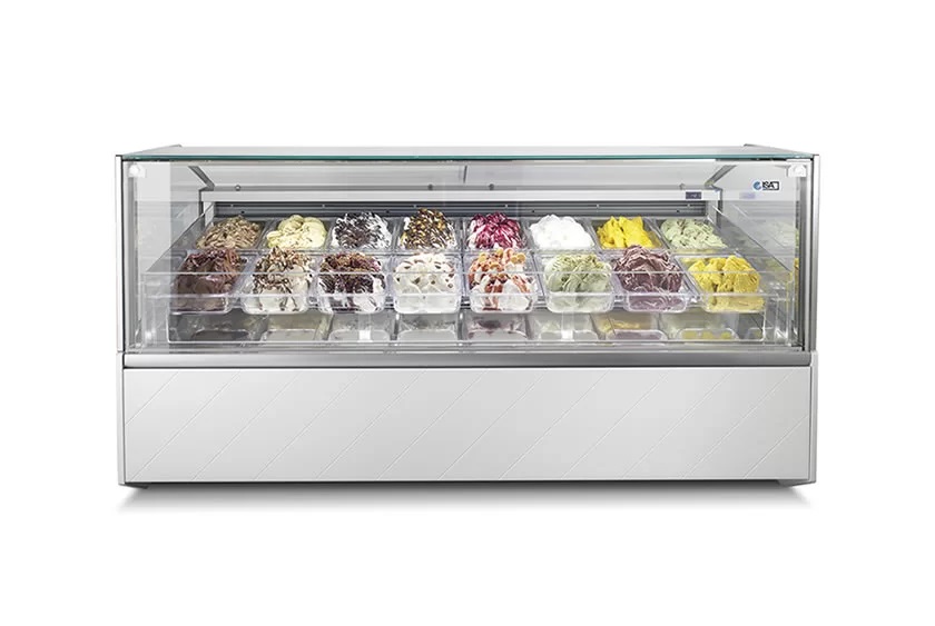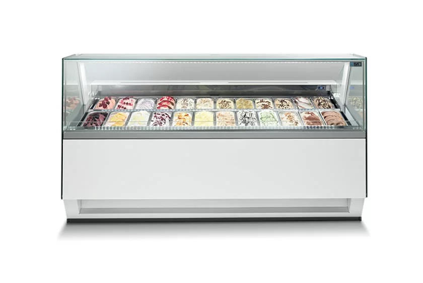 Klasik ve karakteristik dondurma sepetinden en yenilikçi dondurma vitrinine kadar, profesyonellerin dünyasına adanmış tüm Hi-end serisini keşfedin. Zarafet ve işlevselliği unutmadan, kusursuz bir İtalyan tasarımına ve üst düzey teknik özelliklere sahip profesyonel dondurma vitrinleri.