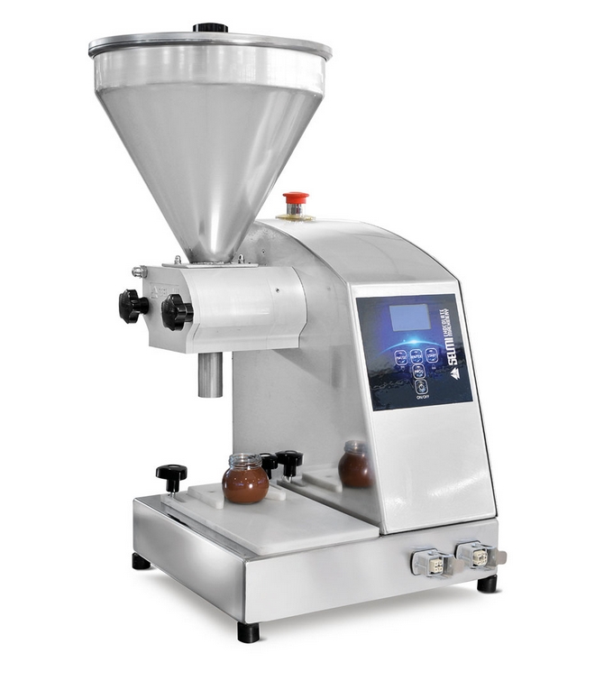 Bu makine, orta ve yüksek yoğunluk ve viskozitede sürülebilir kremaların kavanozlanması için tasarlanmıştır. Dişli pompası alimental alüminyumdan yapılmıştır ve 4 atmosfere kadar basınç uygulayabilir.